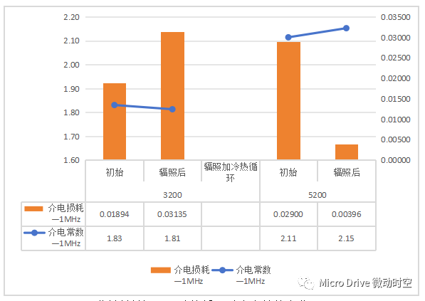 ▲灌封材料辐照及冷热循环后介电性能变化